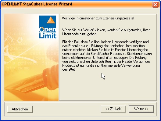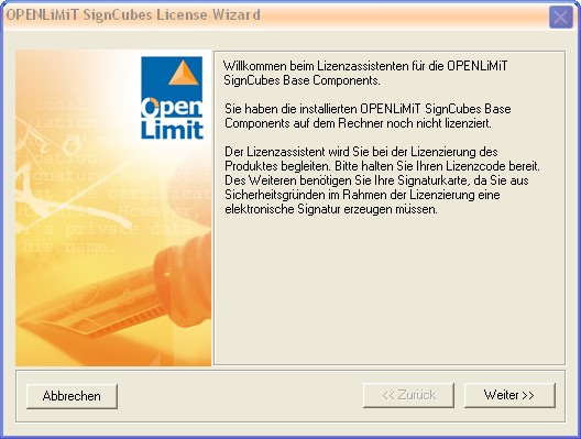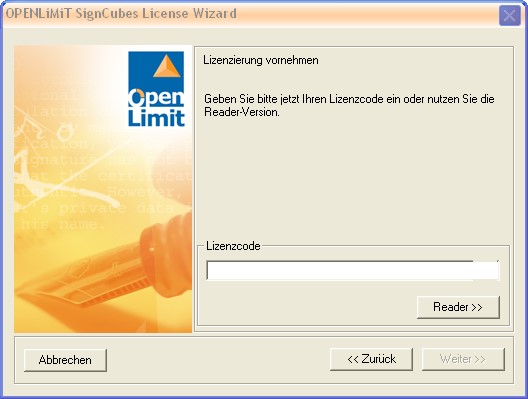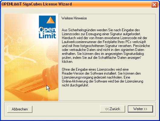5. Schritt: Lizensierung der Signatursoftware OpenLimit