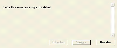 Wenn die Zertifikate erfolgreich installiert wurden, gehen Sie bitte auf „Beenden“.