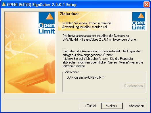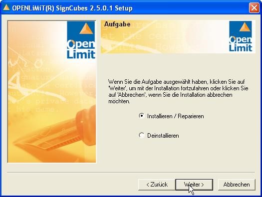 4. Schritt: Installation der Signatursoftware z.B. OpenLimit