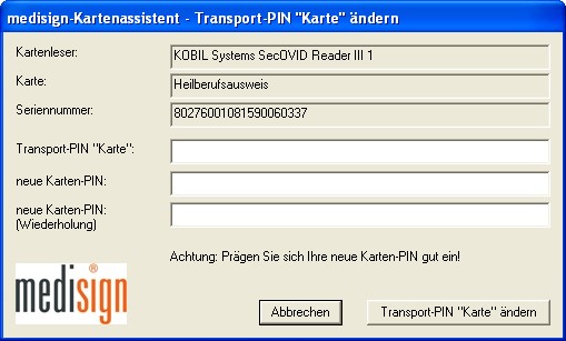 3. Schritt: Ändern der Transport-PIN´s Ihres HBA