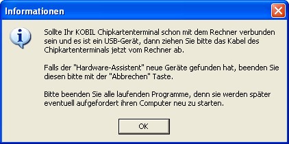 Bitte stellen Sie sicher, dass der Kartenleser erst mit Ihrem System verbunden wird, wenn Sie die Installationsroutine dazu auffordert.