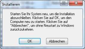 Ggf. werden Sie während des Installationsvorganges zum Neustart des Systems aufgefordert.