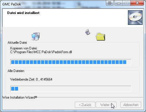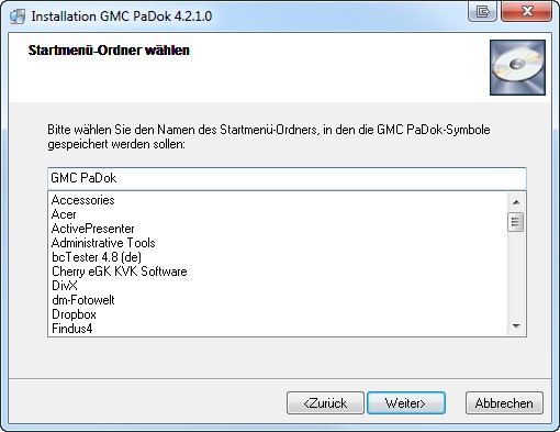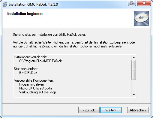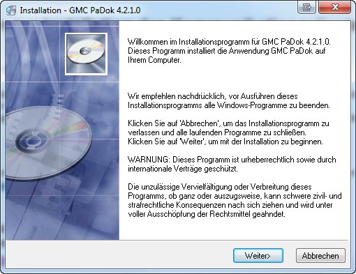 Start der Installation von GMC PaDok: Gehen Sie bitte auf „Weiter“.