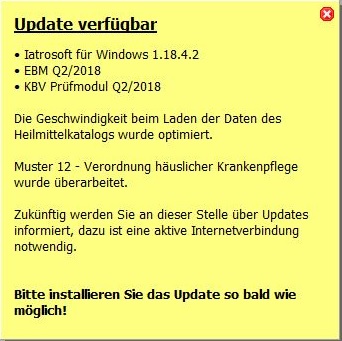Iatropro informiert Sie über anstehende Updates mit einem "gelben Infozettel"