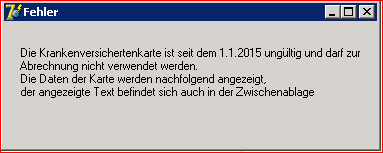 Das System gibt daher folgende Meldung beim Einlesen einer solchen Karte aus.
