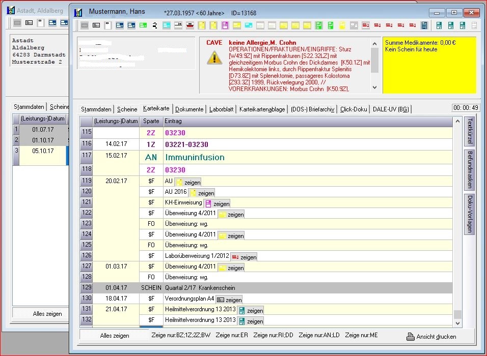 Hier werden alle relevanten Informationen zum Krankheitsverlauf und der Besuche in der Praxis eingetragen