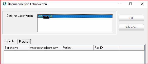Ja nach Labor können die Bezeichnungen abweichen. Die abgeholten Datei muss aber immer die Extention *.LDT aufweisen.