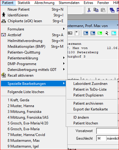 Wählen Sie den Menüpunkt "Patient Duplizieren" aus.