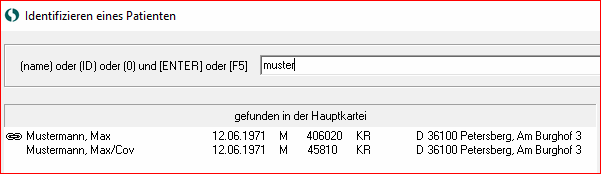 Wenn Sie den Patienten über die Namenssuche öffnen wollen, so erscheint der Patient zwei mal in der Patientenliste