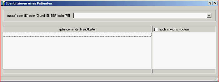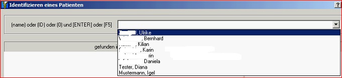 Hier geben Sie entweder den Patientennamen oder die PatientenID ein und drücken dann die ENTER-Taste oder die Funktionstaste F5