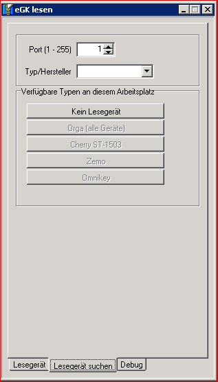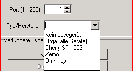 über den Reiter "Lesegerät suchen" kann man zwischen verschiedenen Lesegerät-Typen wählen.