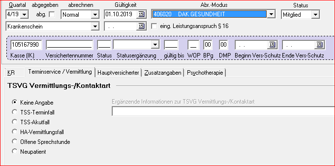 Spalte 3 KR = Krankenschein UE = Überweisung BE = belegärztliche Behandlung NO = Notfalldienst / Vertretung / Notfall PR = Privat BG = BG-Behandlung HäVG-Abrechnung |