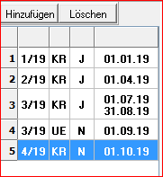in Spalte vier wird angezeigt ob der Schein abgegeben wurde (J / N)