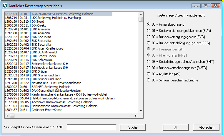 kann hier kann die jeweilige Kasse über ein Drop-Downmenü im Ersatzverfahren ausgewählt werden über den Begriff (suchen) |