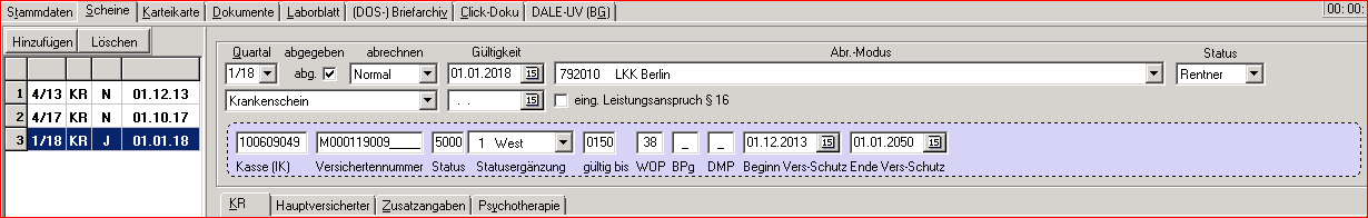 Die Versichertendaten stehen normalerweise alle auf der eGK des Patienten und werden im Regelfall über ein entsprechendes Lesegerät ins Programm eingelesen